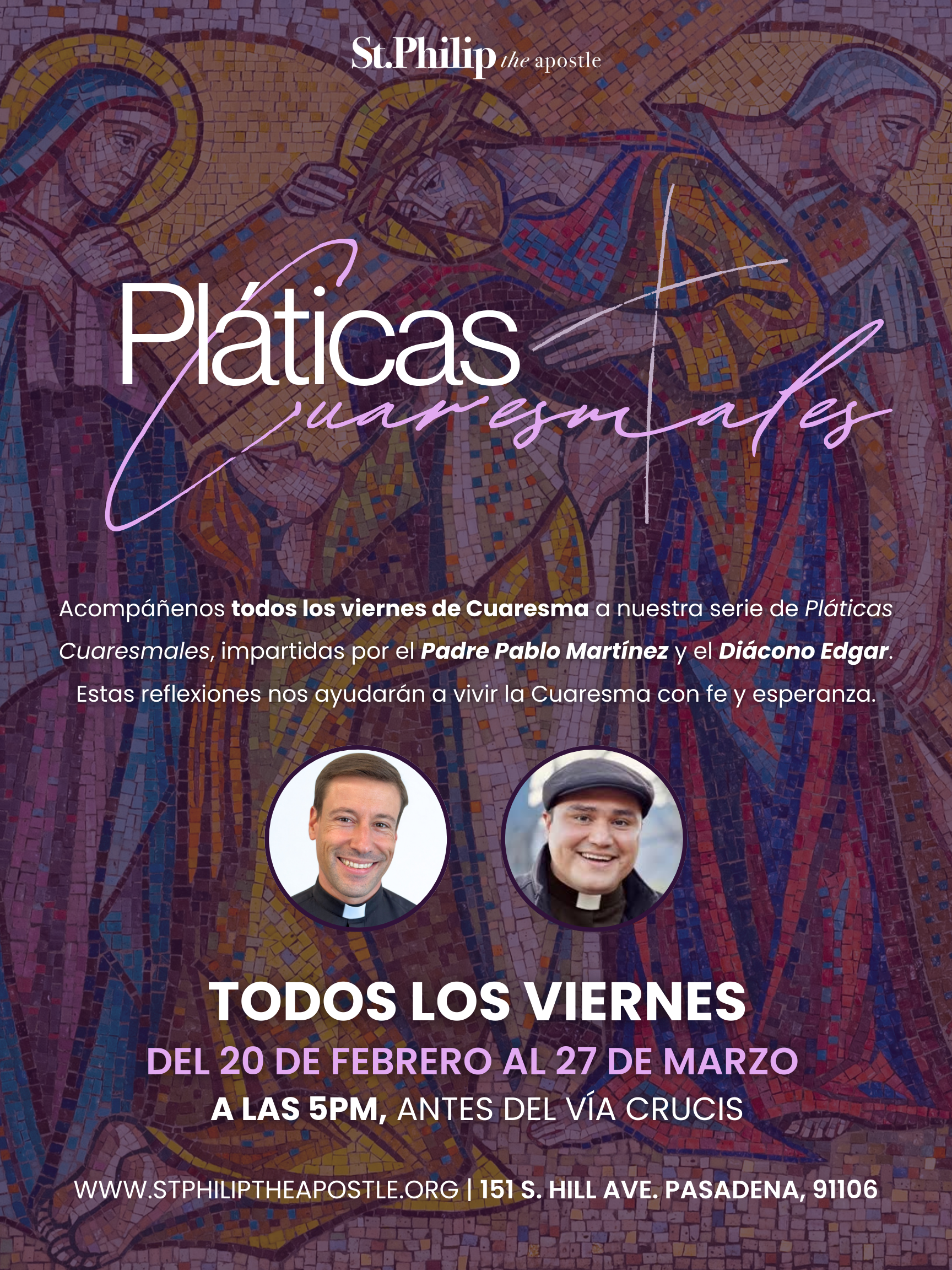 Acompáñenos todos los viernes de Cuaresma, del 20 de febrero al 27 de marzo, a las 5 pm antes del Vía Crucis, a las Pláticas Cuaresmales con el