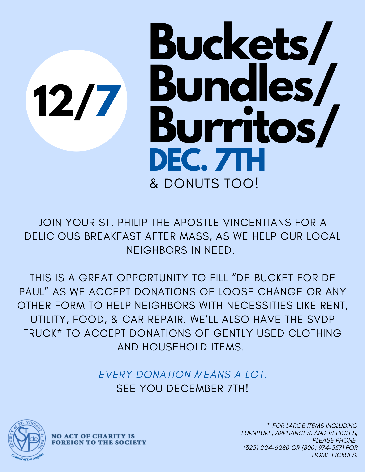 Join St. Vincent de Paul on December 7th for breakfast after Mass and help support neighbors in need through donations!