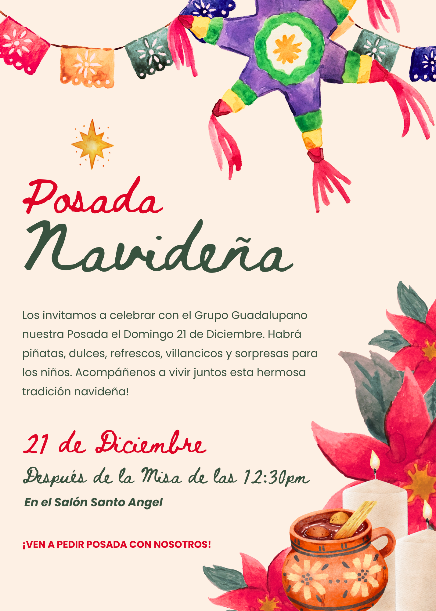 Join us for a festive Christmas Posada on Sunday, December 21st after the Spanish 12:30pm Mass.