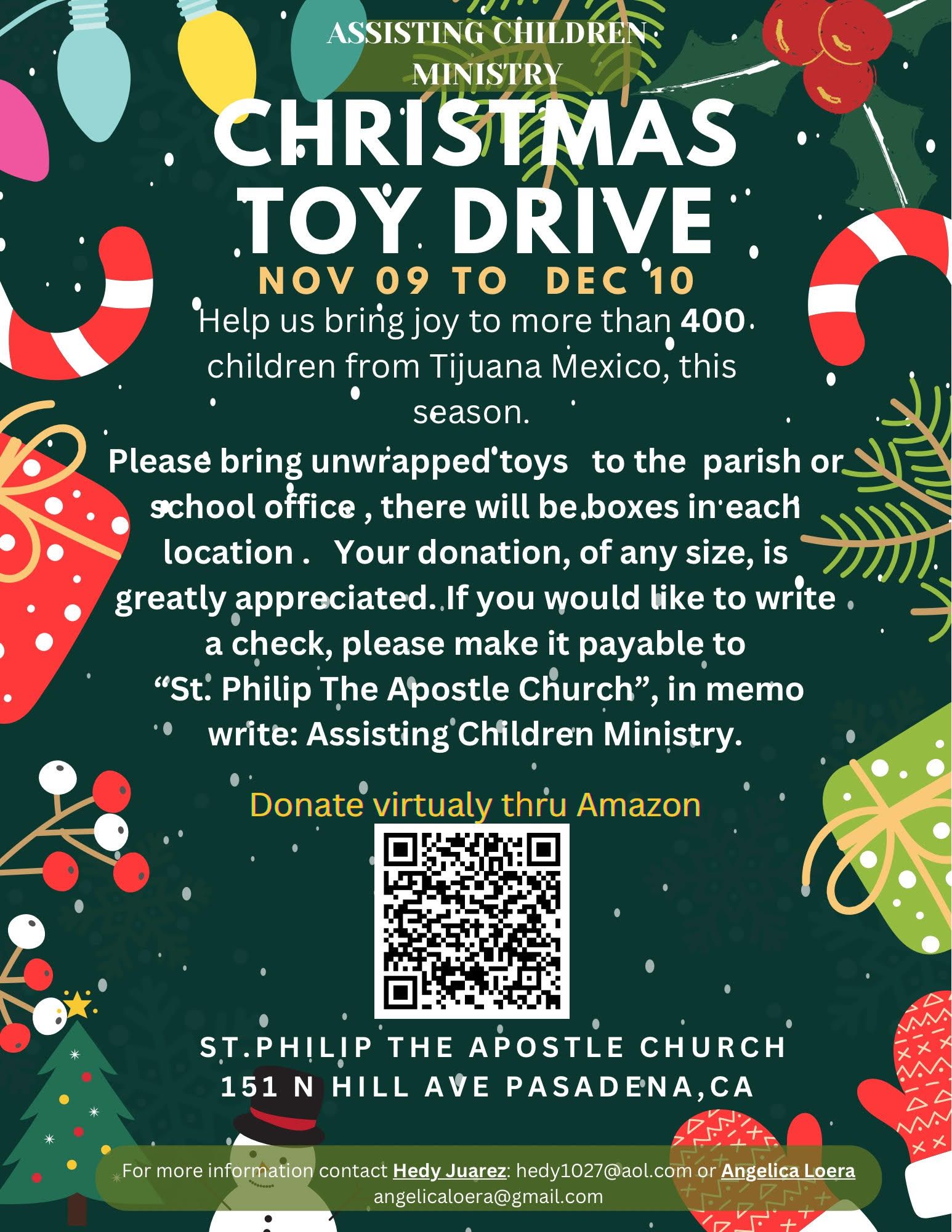 The Assisting Children ministry is inviting you to participate in their annual Toy Drive to help children in Tijuana, Mexico.
