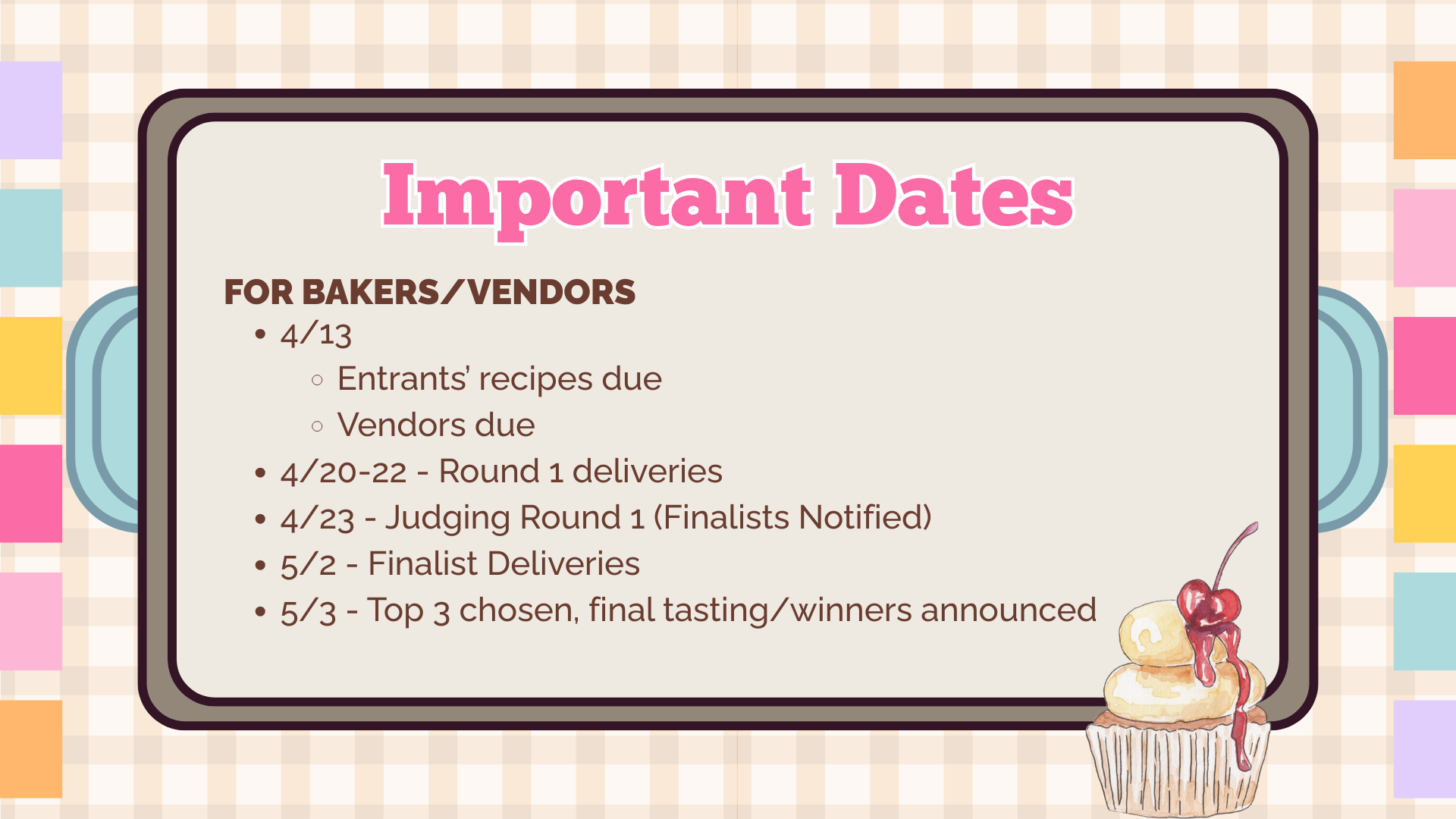 We're looking for pasadena's best baker! Please review the bake-off information below and submit this form by monday, april 13th.