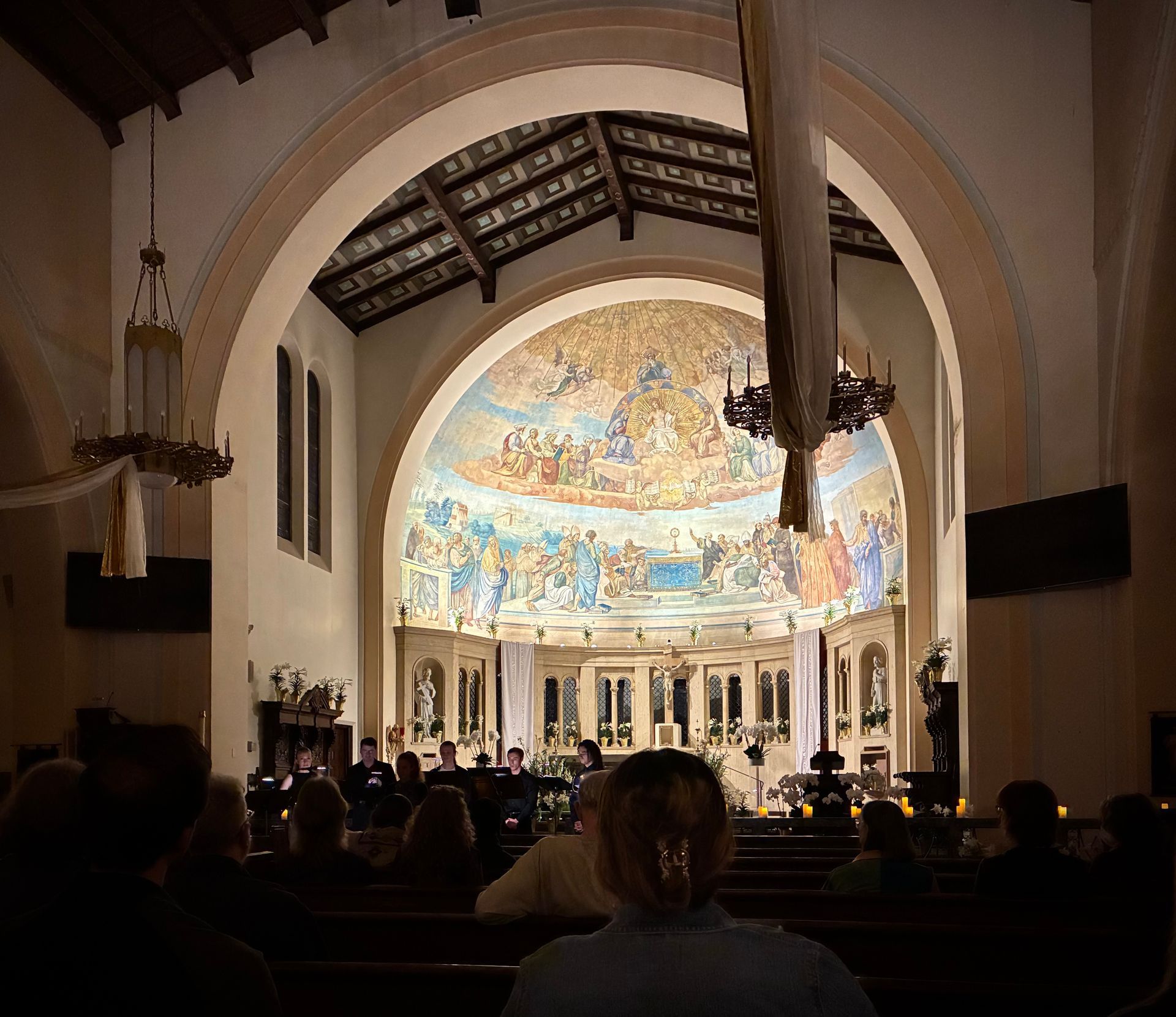 We welcome musicians, ensembles, and community groups seeking a beautiful and dignified setting for musical performance. Our church, the Newman Center, and the outdoor patio are available for concerts, recitals, and musical gatherings that are in keeping with the mission and reverent character of the parish.