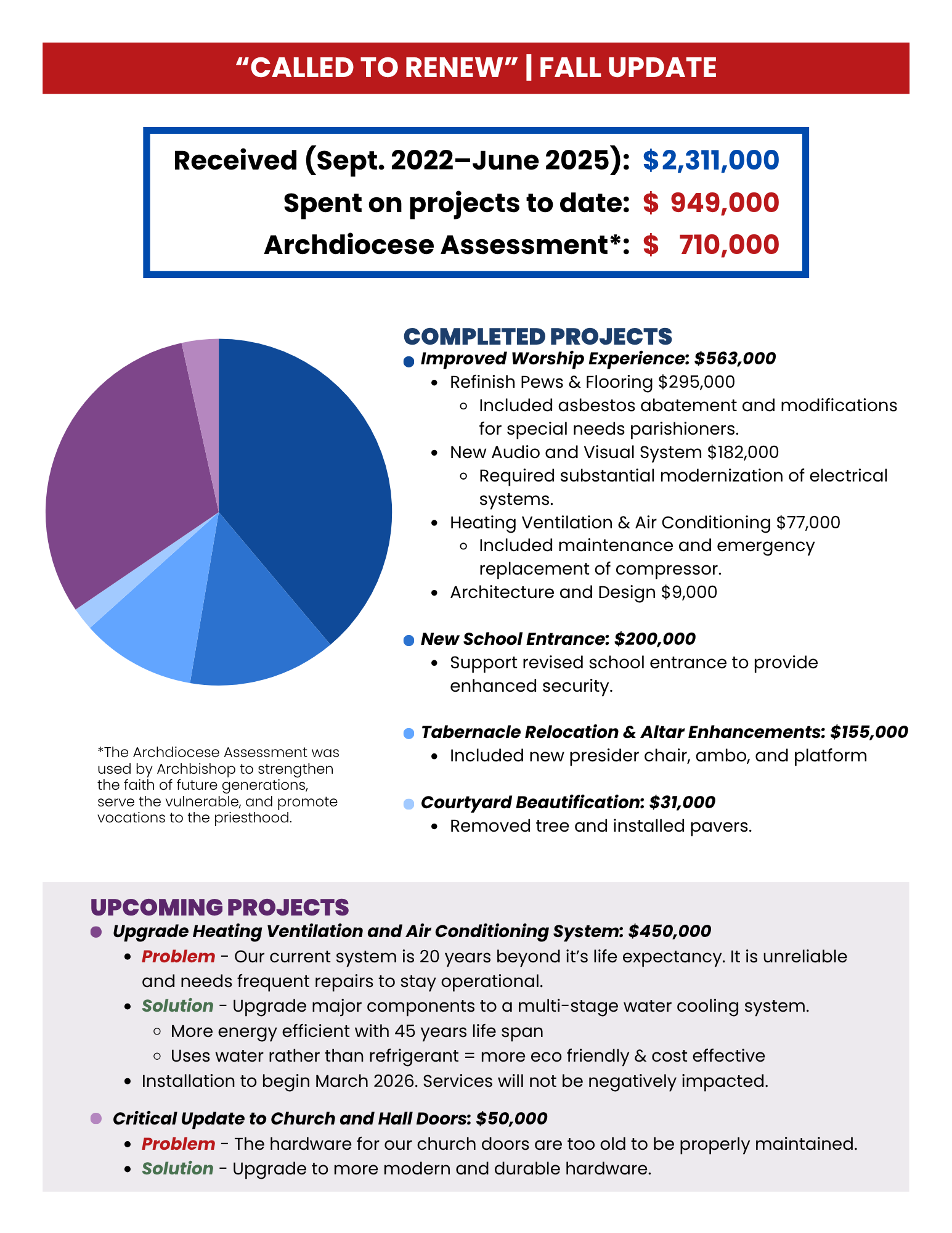 Thank you for your help in bringing spiritual renewal to our community and physical renewal to our buildings.