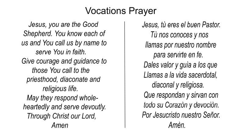 Please continue to pray for our parish priests and for all those discerning God’s call and in formation at St. John’s Seminary and the Queen of Angels Center.